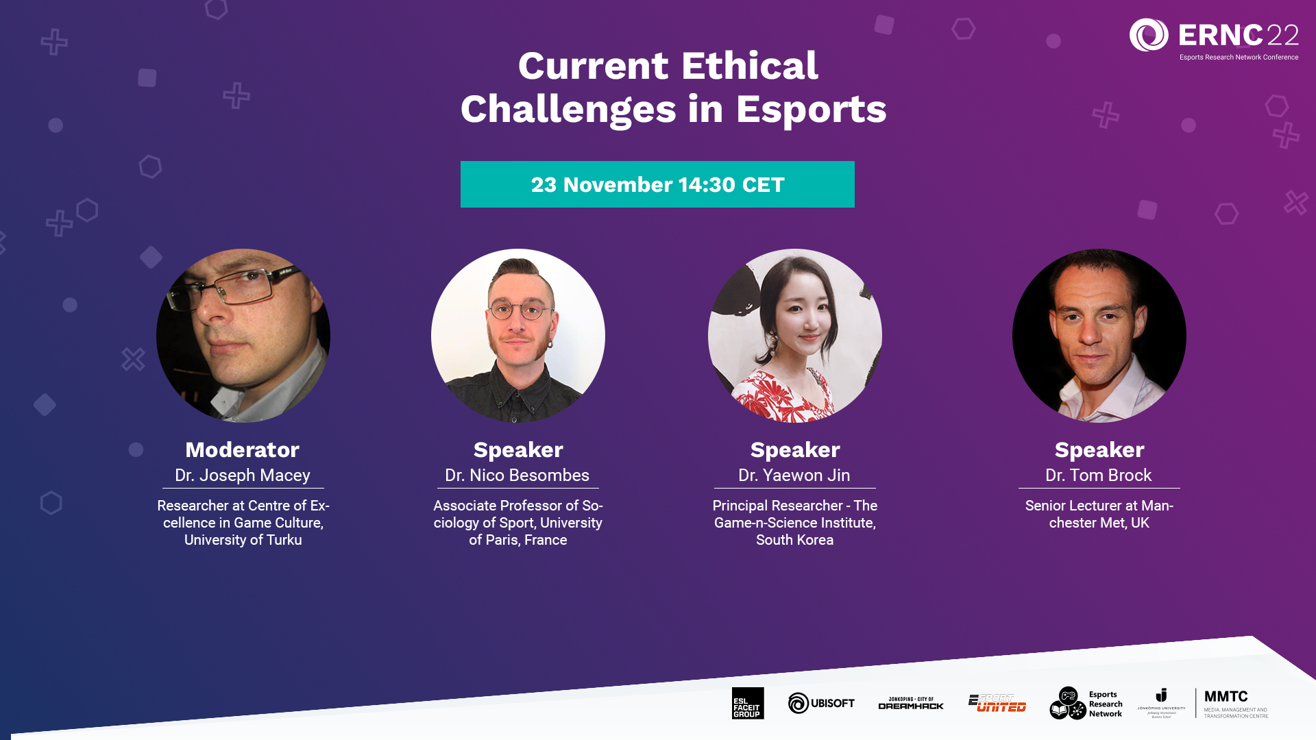 ERNC22 ‘Sustainable Esports in the Digital Society’ is the first in person conference for the Esports Research Network. While last year’s event ‘Health & Wellness in Esports’ was forced to go online due to the pandemic, this year it is being held in Jönköping in Sweden, the ‘City of DreamHack’. With a longer history than most with esports (click here for the research), Jönköping offers the perfect venue for this first live event with most attendees attending DreamHack after the conference in line with ERN’s goals of academia working with practitioners. And the industry is happy to engage back with our main sponsor, ESL Faceit Group, providing speakers, support and engagement with the DreamHack festival.
